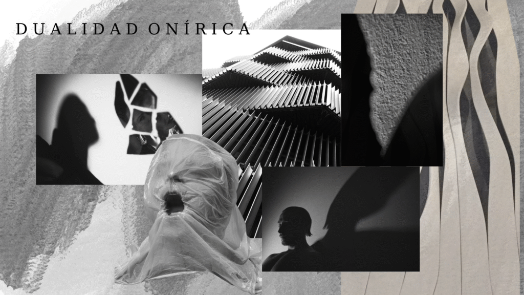 “La fascinación por los sueños y las pesadillas y el estudio de estos es el tema de inspiración de Onírico. Sueño y pesadilla son conceptos que representan la dualidad entre lo placentero y lo perturbador, al tiempo que reflejan esa necesidad de un equilibrio emocional en nuestra vida entre lo positivo y  lo negativo, rasgos opuestos pero que son de suma importancia para la realización emocional del ser humano. Esta colección busca convertirse en un manifiesto visual que destaca, en cada pieza, la profunda conexión que se tiene con nuestras emociones, manifiestas en nuestros sueños y en nuestras pesadillas. Elegimos representar la dualidad y la complejidad a través de un diseño elegante que combina colores claros y oscuros, figuras simétricas y siluetas rectas, piezas con volumen, capas y alforzas, que  hablan del significado de los sueños y las pesadillas”.